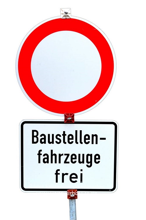 Verkehrsschild Verbot für Fahrzeuge aller Art außer Baustellenfahrzeuge