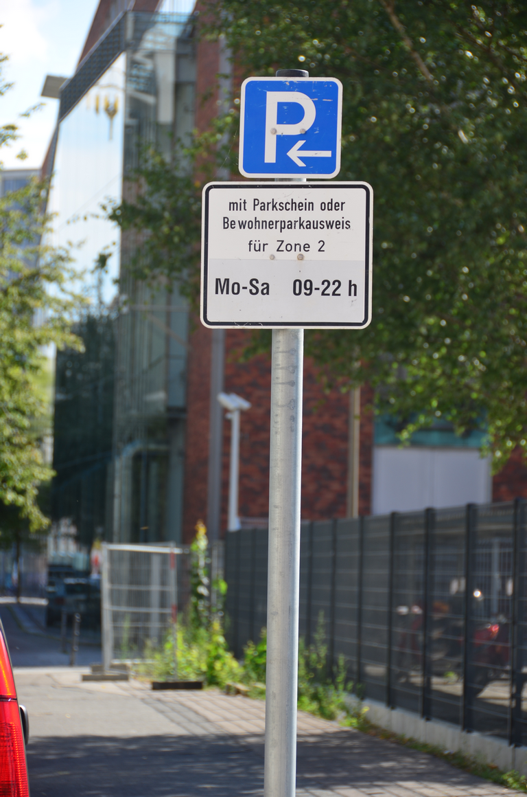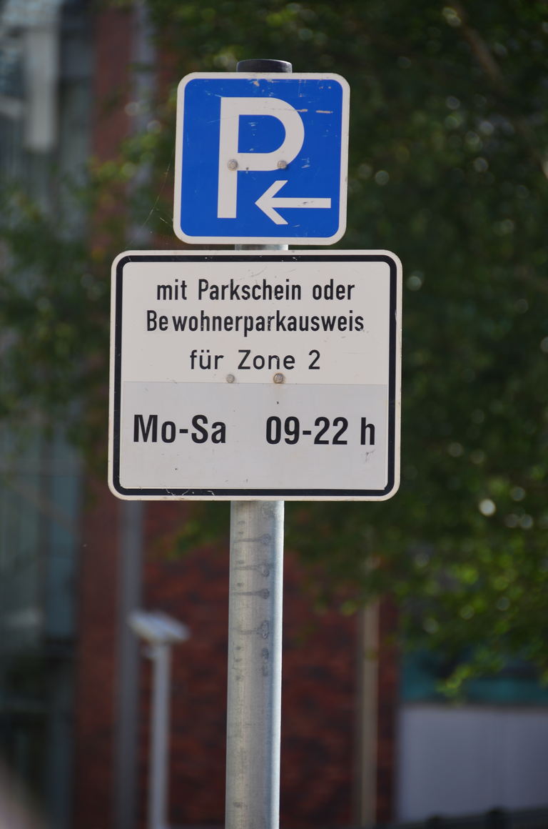 Verkehrszeichen eingeschränktes Parkverbot für eine Zone