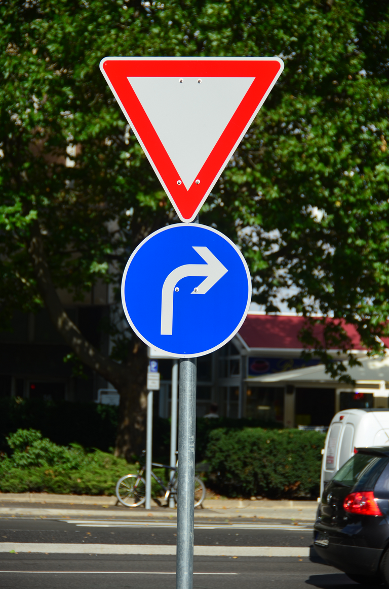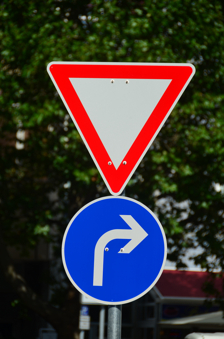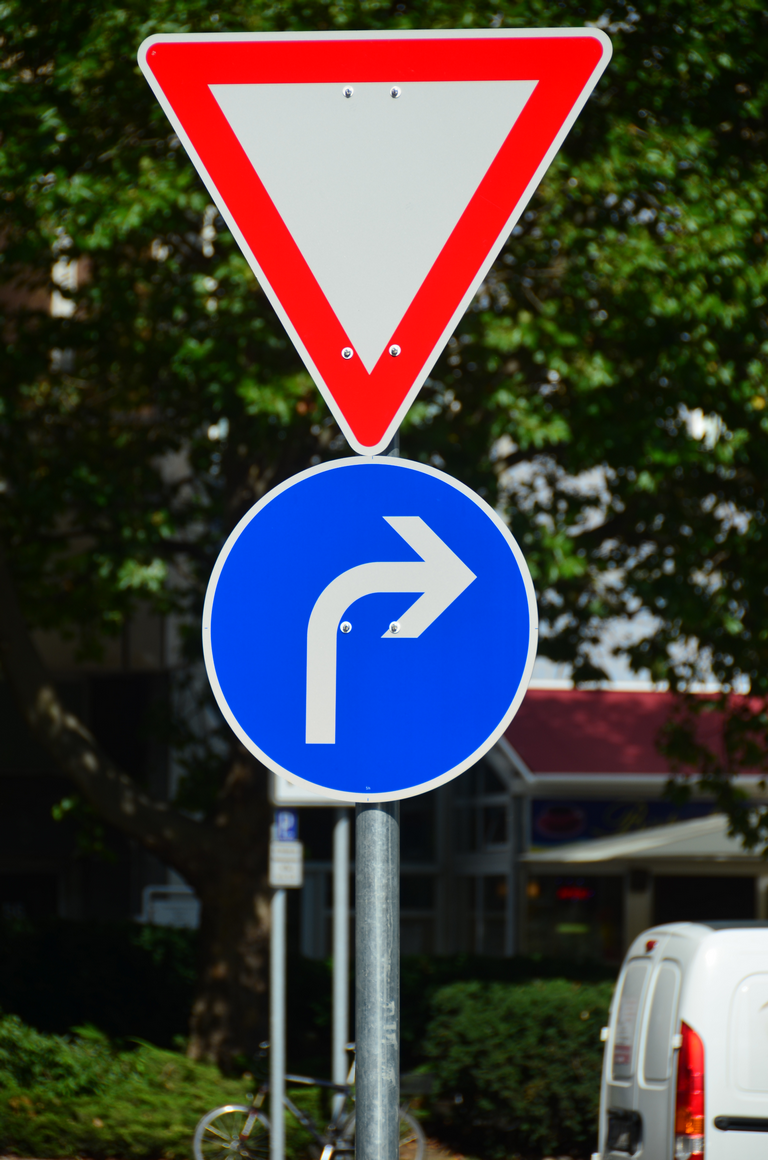 Vorschriftzeichen Vorfahrt gewähren vorgeschriebene Fahrtrichtung rechts