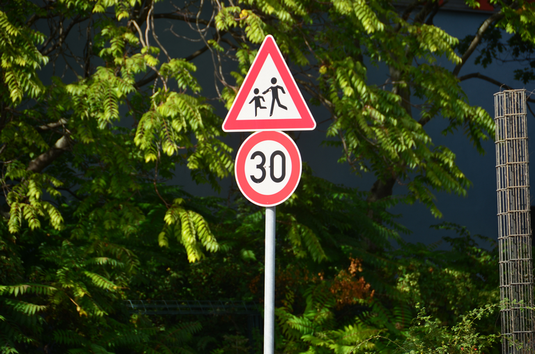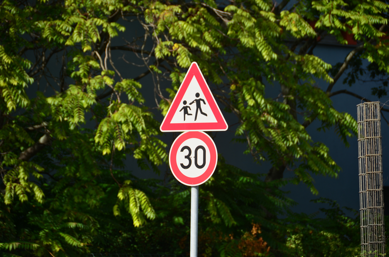 Verkehrszeichen Kinder, zulässige Höchstgeschwindigkeit 30 kmh