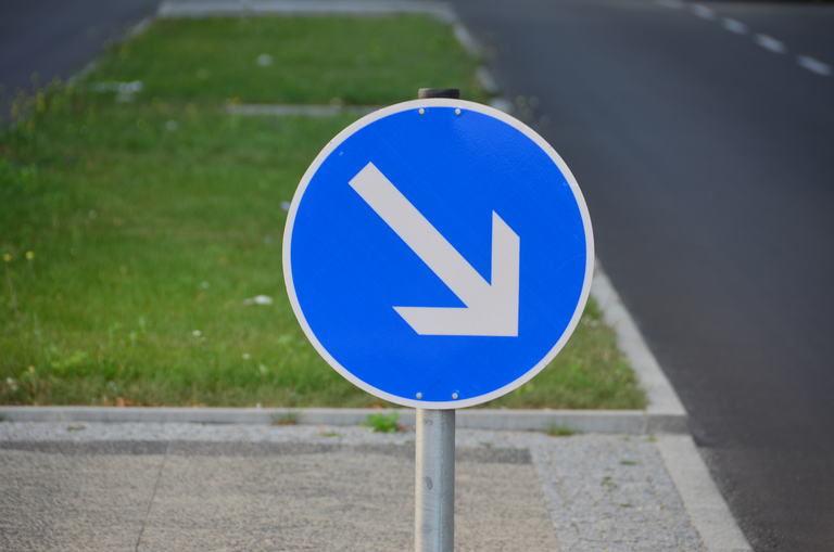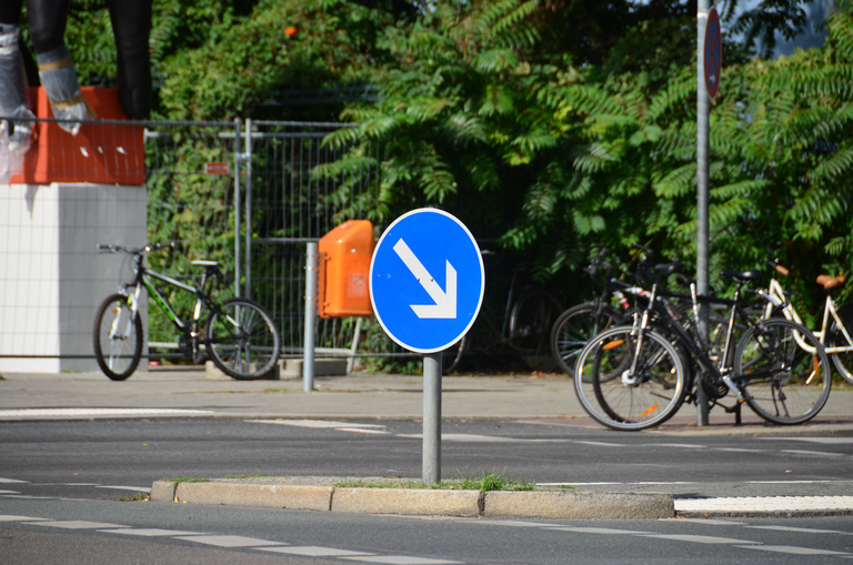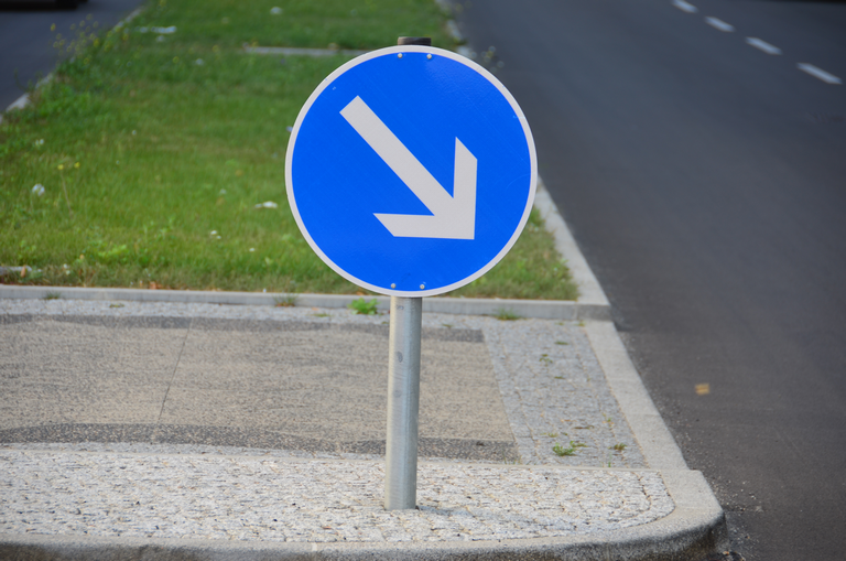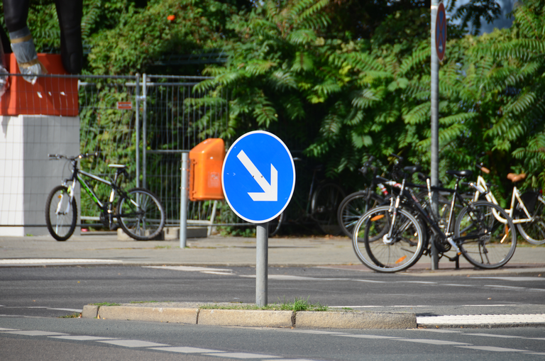 Verkehrsschild vorgeschriebene Vorbeifahrt - rechts vorbei