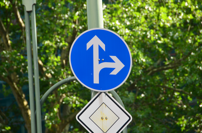 Vorschriftzeichen vorgeschriebene Fahrtrichtung - geradeaus und rechts