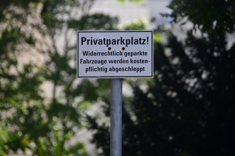 Zusatzzeichen Privatgrundstück und kostenpflichtiges Abschleppen